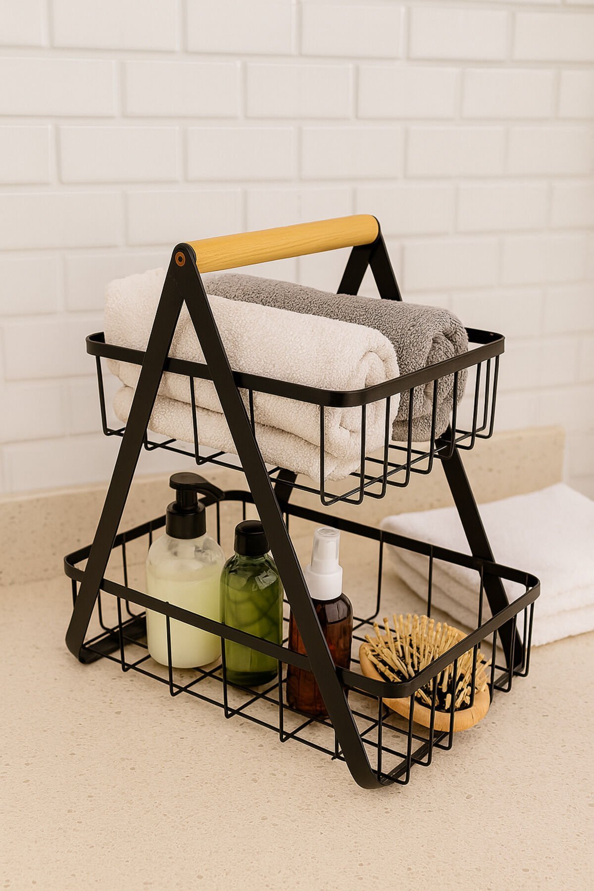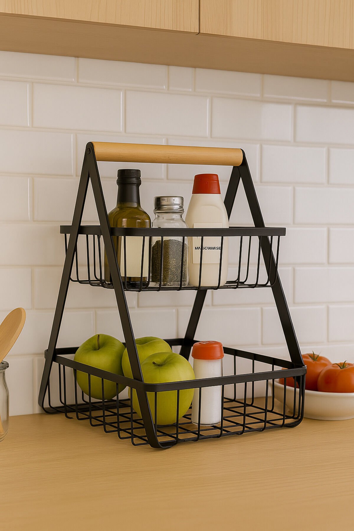 2 Katlı Siyah Otel TipiPaslanmaz Banyo Düzenleyici Mutfak Çok Kullanımlı Organizer Mutfak Rafı