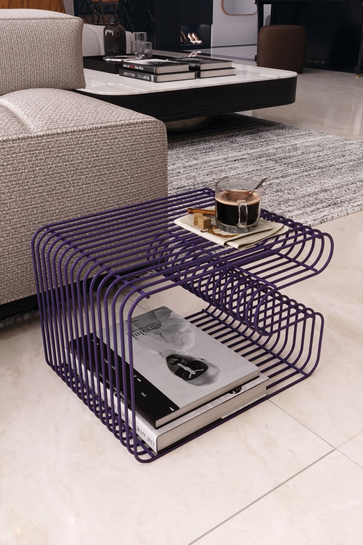 Modern ve minimalist tasarımın en zarif halini evinize taşıyan Tel Metal Tasarımlı Modern Paslanmaz Yan Sehpa, dekoratif metal sehpa arayışınıza son veriyor.; Oturma odası, salon veya yatak odası gibi farklı yaşam alanlarınızda estetik ve fonksiyonelliği bir arada sunan bu eşsiz parça, metalin modern dokunuşunu paslanmaz çeliğin dayanıklılığı ile birleştiriyor.; Siyah tel metal tasarımının yanı sıra mor, yeşil, kiremit, lacivert ve turkuaz gibi canlı renk seçenekleriyle her türlü dekorasyon stiline anında uyum sağlarken, minimalist çizgileriyle mekanınıza ferahlık katıyor.; Bu dekoratif yan sehpa, hem kahve keyiflerinizde size eşlik edecek bir servis sehpası hem de kitap, dergi veya en sevdiğiniz objeleri sergileyeceğiniz şık bir köşe oluşturmanızı sağlıyor.; Metal tel sehpa, endüstriyel tasarımın incelikli bir yorumu olarak modern ev dekorasyonunun vazgeçilmez bir tamamlayıcısıdır.; Koltuk yanı sehpası olarak kullanım kolaylığı sunan bu ürün, hafif yapısıyla da dilediğiniz an yerini değiştirebilme özgürlüğü tanıyor.; Fonksiyonel ve şık bir mobilya arayanlar için ideal bir seçim olan bu paslanmaz metal sehpa, yaşam alanlarınıza modern bir kimlik kazandırırken, kullanışlı yapısıyla günlük hayatınızı kolaylaştırır.; Farklı renk alternatifleri sayesinde dekorasyonunuza enerjik veya sofistike bir dokunuş katabileceğiniz bu yan sehpa, modern ve minimalist mobilya anlayışının en güzel örneklerinden birini sunarak evinizin atmosferini zenginleştirir.;