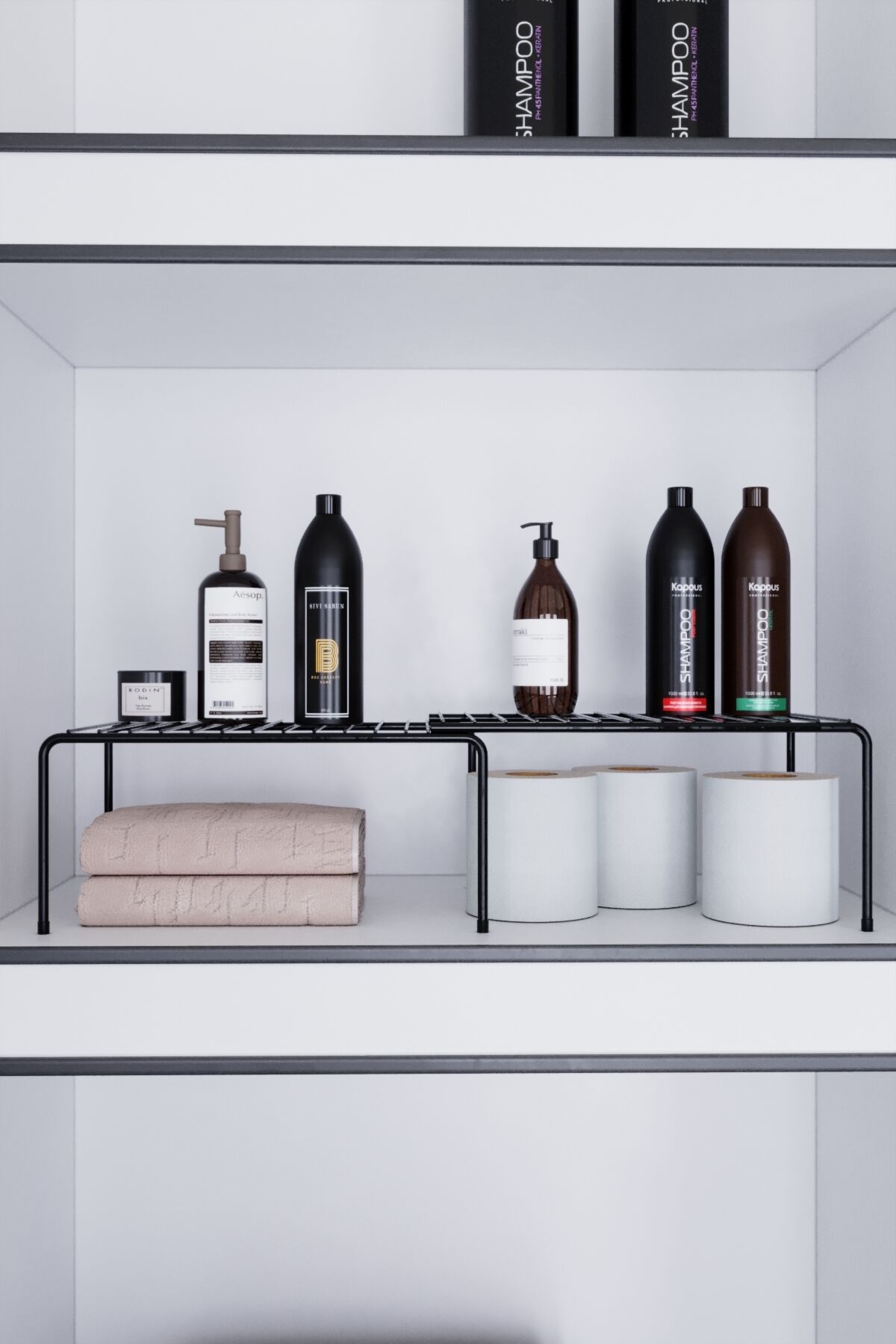- Dayanıklı metal malzeme kullanımı sayesinde uzun ömürlü ve sağlam bir yapı sunar.; - İki parça set halinde gelmesi, farklı boyutlardaki eşyalarınız için ideal düzenleme imkanı sağlar.; - 34 x 25 cm ebatlarındaki geniş yüzey alanı, mutfak veya banyonuzda ekstra depolama alanı yaratmanızı kolaylaştırır.; - Siyah renk seçeneği ile modern ve şık bir görünüm sunarken, mevcut dekorasyonunuza kolayca uyum sağlar.; - Kolay temizlenebilir yüzeyi sayesinde Type 0 yıkama talimatlarına göre pratik bir şekilde temizlenebilir; böylece hijyenik bir kullanım sunar.; - Siyah renk seçeneğiyle her türlü renk paletine uyum sağlayarak mekanınızda estetik bir bütünlük oluşturur.