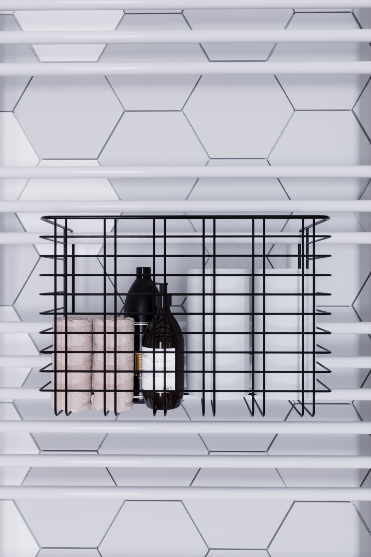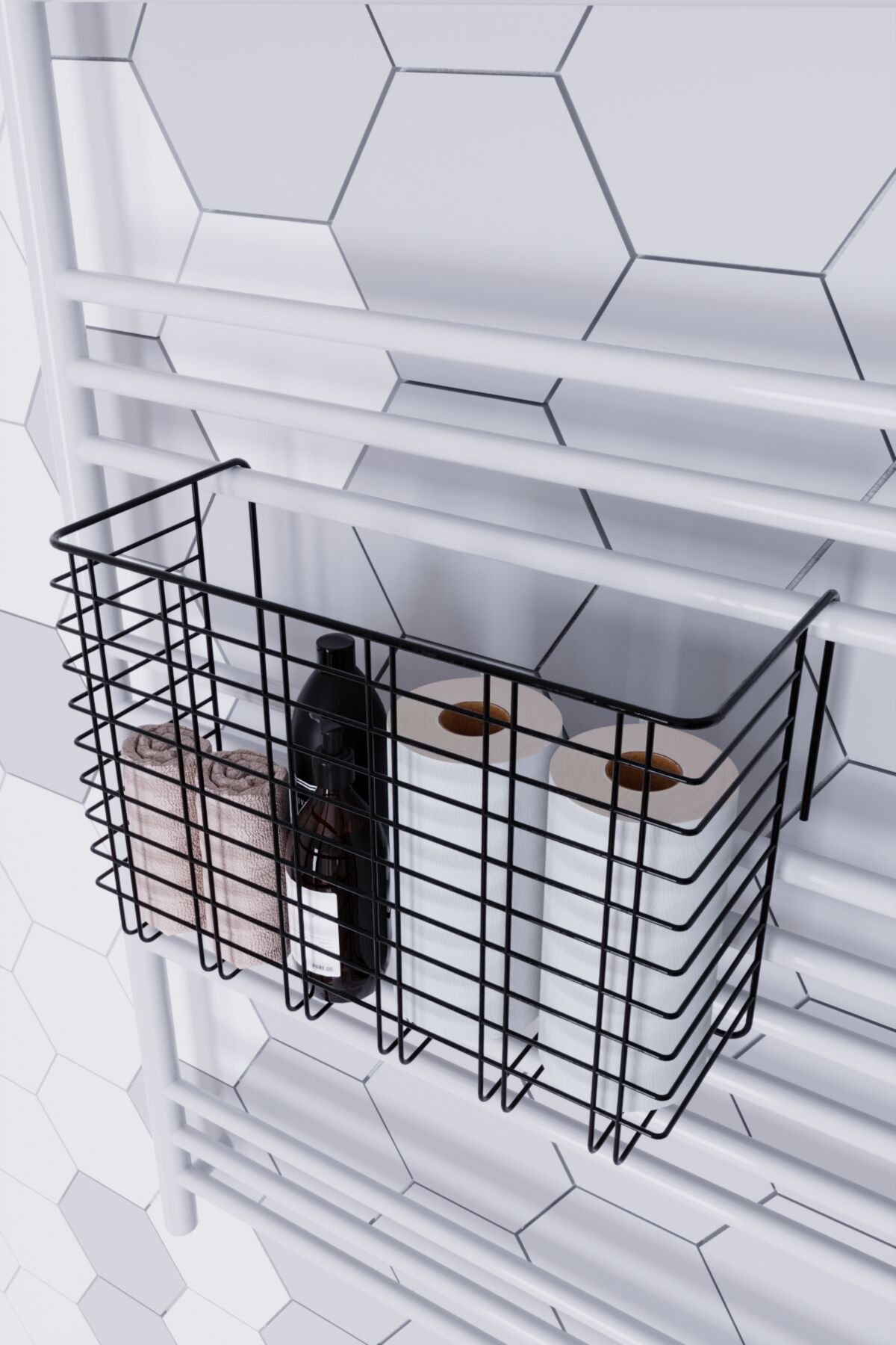Dayanıklı metal malzeme kullanımı sayesinde uzun ömürlü ve sağlam bir yapı sunar; Havlu, tuvalet kağıdı, makyaj ve kozmetik gibi banyo malzemelerinizi düzenli bir şekilde saklamanızı sağlar; Havluluk üzerine monte edilebilen tasarımı ile banyonuzda yerden tasarruf etmenize yardımcı olur; Kolay temizlenebilir yüzeyi sayesinde hijyenik bir kullanım sunar ve bakımı pratiktir;