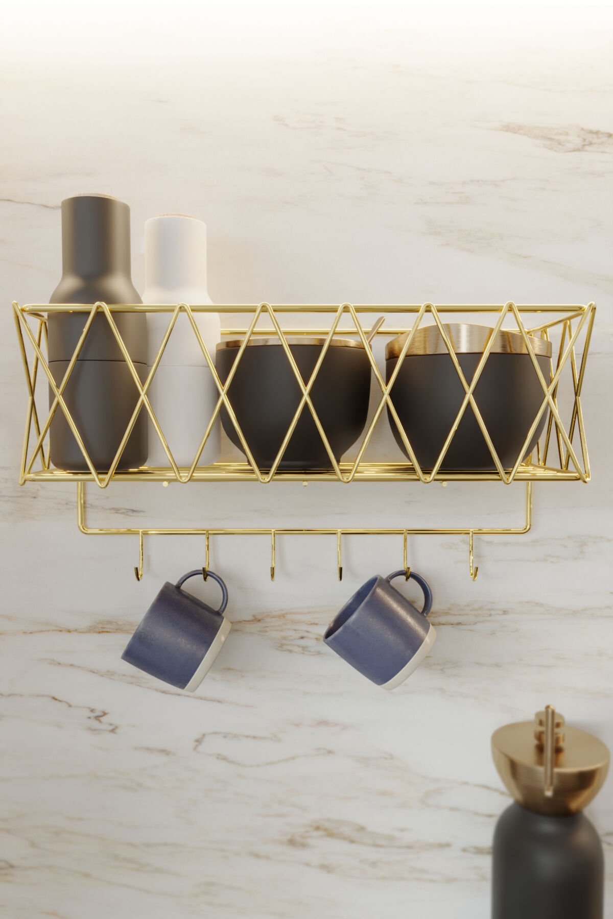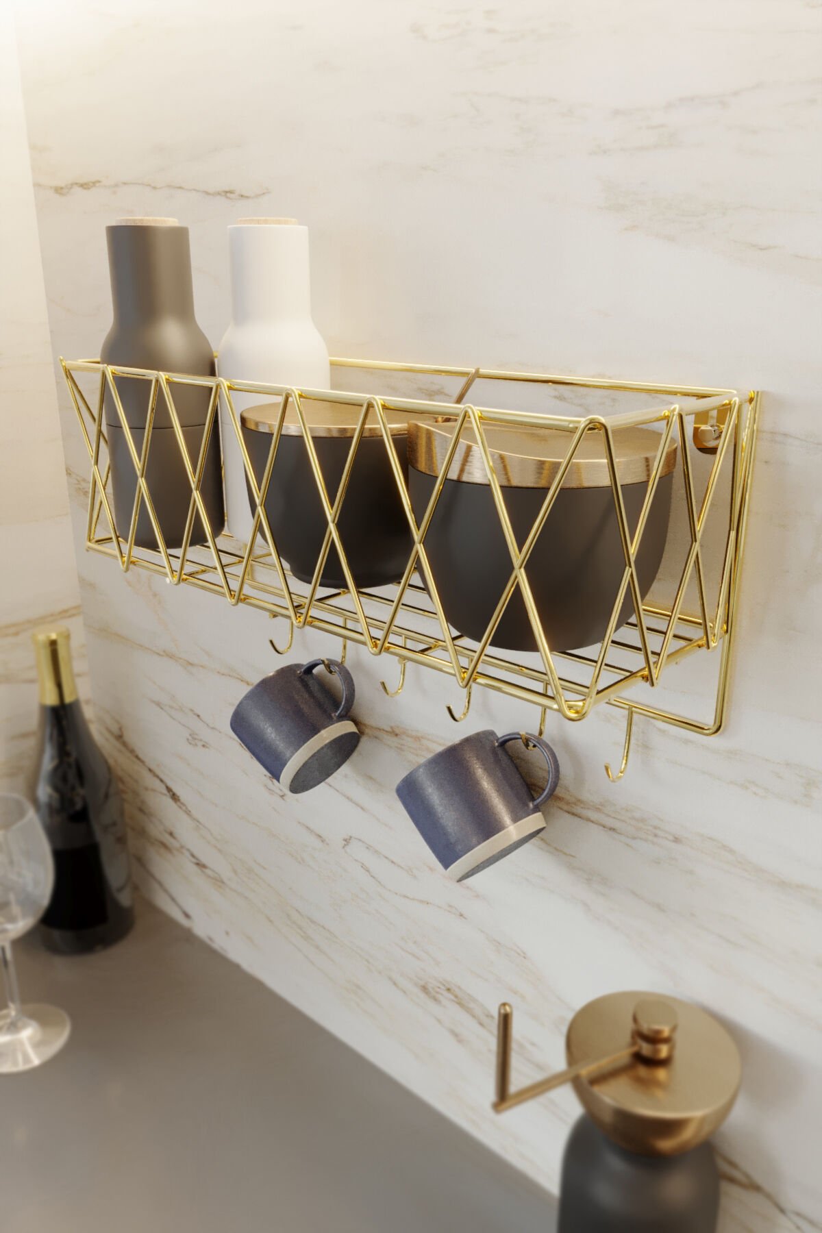 - Dayanıklı metal malzeme kullanılarak üretilmiş, uzun ömürlü bir kullanım sunar.; - Şık altın rengi ile mutfak dekorasyonunuza modern bir dokunuş katar.; - 6 ay garanti süresiyle satın alma sonrası güven sağlar.; - Klasik tasarımıyla her türlü mutfak dekorasyonuyla uyumlu olacak şekilde dizayn edilmiştir.; - İskandinav stilinin sadeliği ve zarafetiyle minimalist mutfaklara mükemmel uyum sağlar.; GOLD PASLANMAZ Metal Mutfak Rafı Baharatlık Kahve Fincanlığı Mutfak Seti, mutfakta şıklığı ve düzeni bir araya getiren mükemmel bir üründür.; Modern tasarımı ve dayanıklı paslanmaz çelik yapısı ile uzun ömürlü ve estetik bir çözüm sunar.; Baharatlarınızı, kahve fincanlarınızı ve diğer mutfak eşyalarınızı düzenli tutarak, mutfağınızda daha fazla alan yaratır.; Öne Çıkan Özellikler: Dayanıklı Paslanmaz Çelik: Paslanmaz metal yapısı sayesinde uzun yıllar boyunca güvenle kullanabilirsiniz.; Şık Altın (Gold) Renk Tasarımı: Mutfak dekorasyonunuza zarif bir dokunuş katacak altın renk tasarımı ile estetik açıdan göz alıcıdır.; Çok Fonksiyonlu Kullanım: Baharatlık, kahve fincanlığı, şişe ve diğer mutfak eşyalarını düzenlemek için ideal bir çözüm sunar.; Kolay Kurulum: Pratik montajı ile hızlı bir şekilde kullanıma hazır hale gelir, mutfakta yer tasarrufu sağlar.; Kompakt ve Modern Tasarım: Az yer kaplayan yapısı sayesinde mutfak tezgahınızda fazla yer işgal etmez, ancak düzen sağlar.; Mutfakta düzeni sağlamak ve yerden tasarruf etmek isteyenler için mükemmel bir tercihtir.; Hem şık hem de işlevsel olan bu set, her mutfağa zarif bir dokunuş katacaktır.; GOLD PASLANMAZ Metal Mutfak Rafı Baharatlık Kahve Fincanlığı Mutfak Seti ile mutfaklarınızda hem şıklığı hem de düzeni yakalayın!
