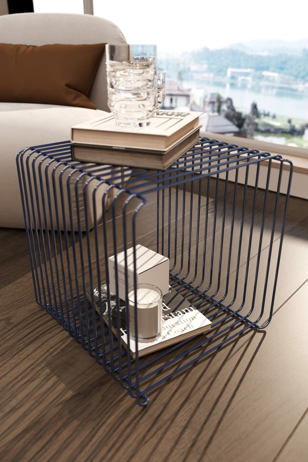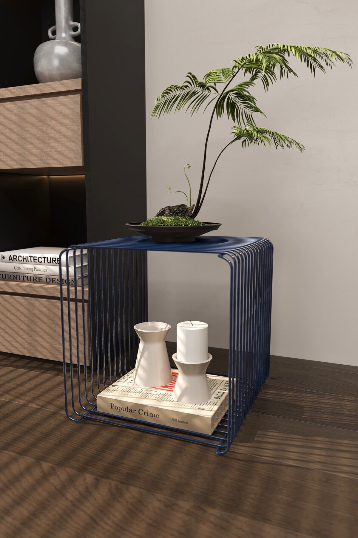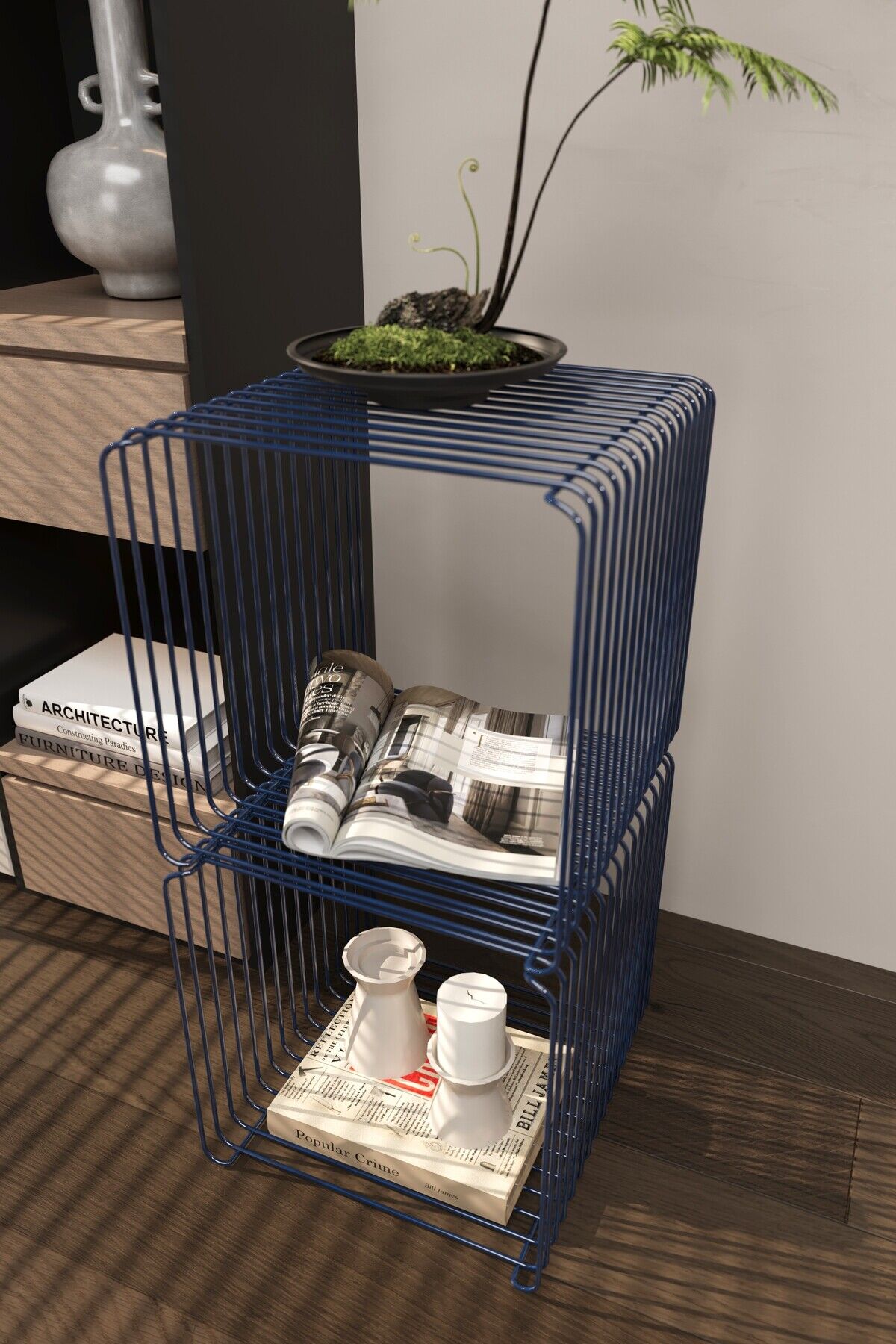 Miami Minimalist Metal Tel Yan Sehpa Modern Küp Yan Sehpa & Modüler Kitaplık