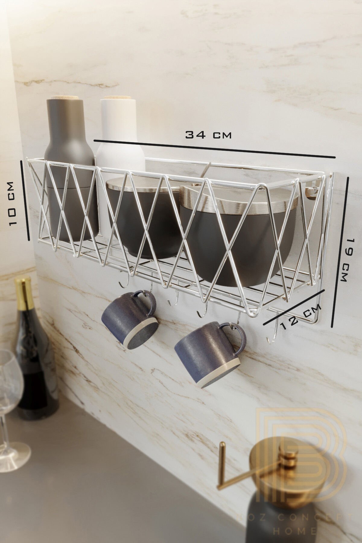 Mutfak Rafı Lüks Baharatlık Kağıt Havluluk Fincanlık Sepet Raf Dekoratif Düzenleyici Sepet Peçetelik