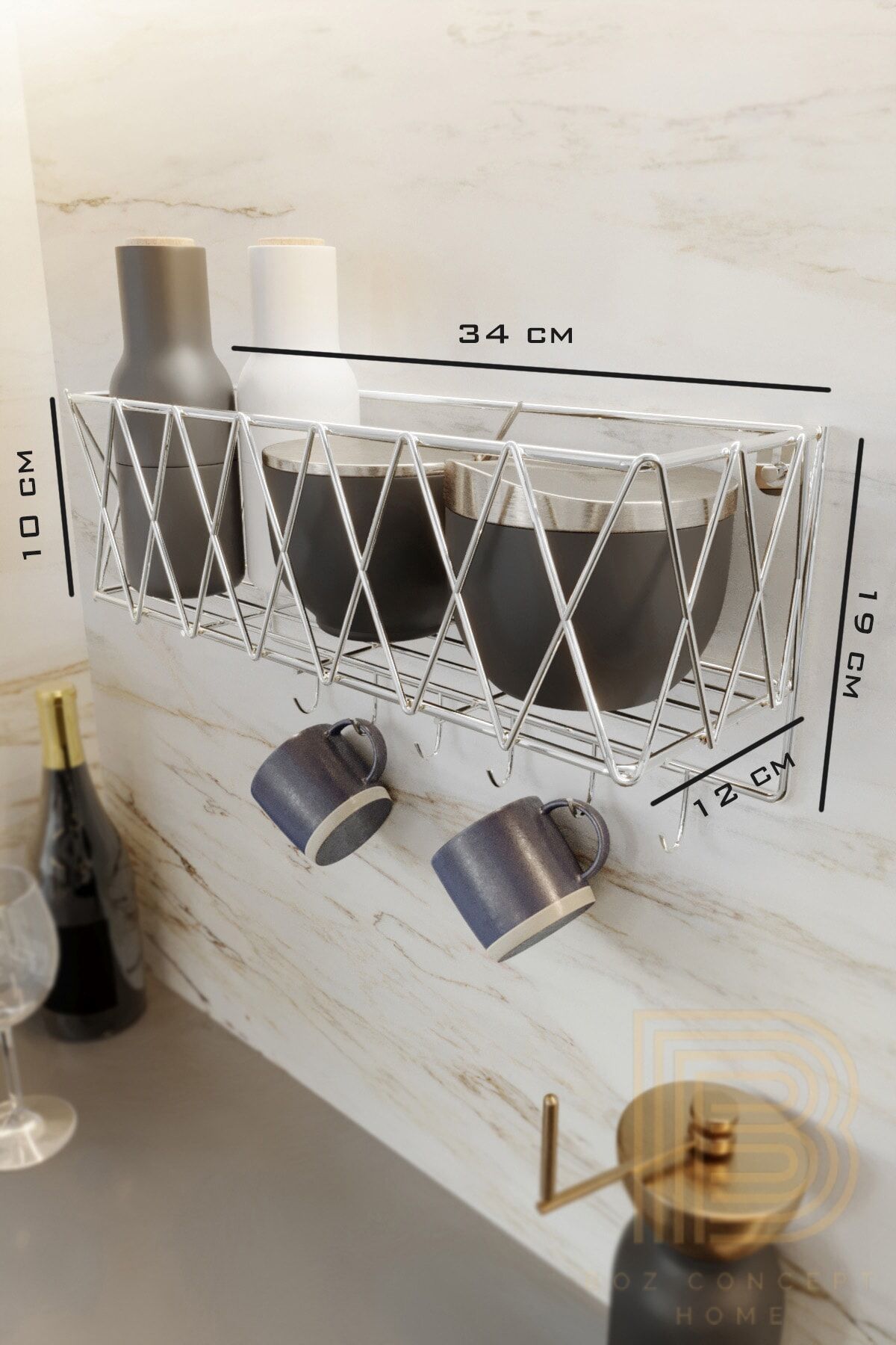 Mutfak rafı lüks modern gümüş metal baharatlık rafı organizer düzenleyici mutfak dekorasyonunuza şıklık ve düzen katar.; Paslanmaz çelik malzemeden üretilen sağlam yapısı sayesinde uzun yıllar dayanıklı kullanım sunar.; Gümüş metal yüzeyi modern ve zarif görünüm sağlayarak mutfaklarınıza estetik bir hava katar.; Duvara monte edilebilen tasarımı ile küçük mutfaklarda yerden tasarruf ettirir ve kullanım kolaylığı sağlar.; Baharatlık rafı olarak kavanozlarınızı düzenli şekilde saklamanıza imkân verir.; Çok amaçlı organizer düzenleyici yapısı sayesinde baharat, sos şişesi, küçük kavanoz, kupa, mutfak aksesuarı ve günlük ihtiyaçlarınızı pratik şekilde düzenleyebilirsiniz.; Kolay temizlenebilir yüzeyi hijyen sağlar ve parlak metal kaplaması uzun süre parlaklığını korur.; Boz Concept Home kalitesiyle tasarlanan bu mutfak rafı, hem fonksiyonel hem de estetik çözüm arayan kullanıcılar için idealdir.; Mutfakta düzen, şıklık ve işlevselliği bir arada sunan modern gümüş metal baharatlık rafı, yaşam alanlarınıza değer katar.