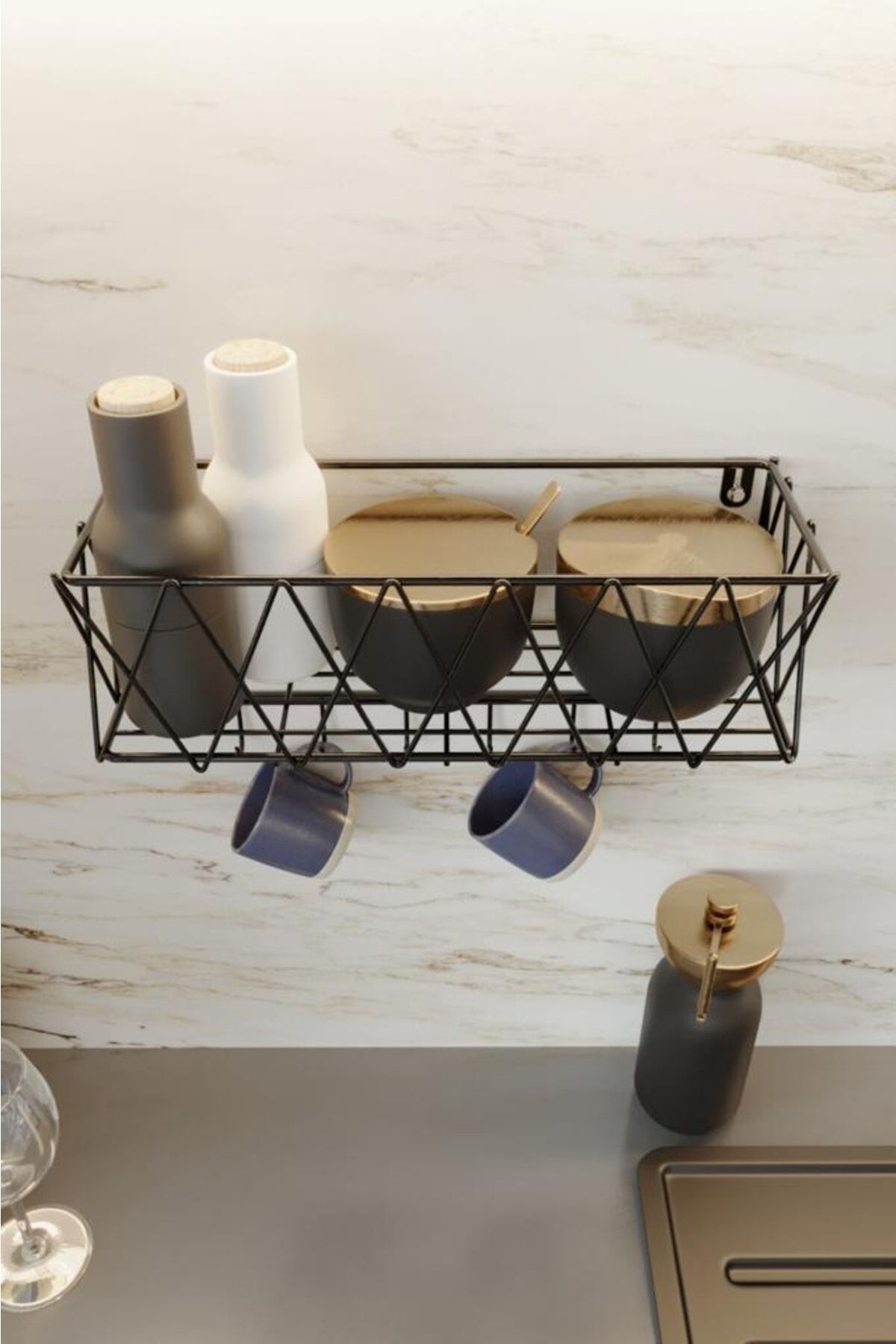 Mutfak Rafı Lüks Modern Siyah Metal Baharatlık Rafı Organizer Düzenleyici
