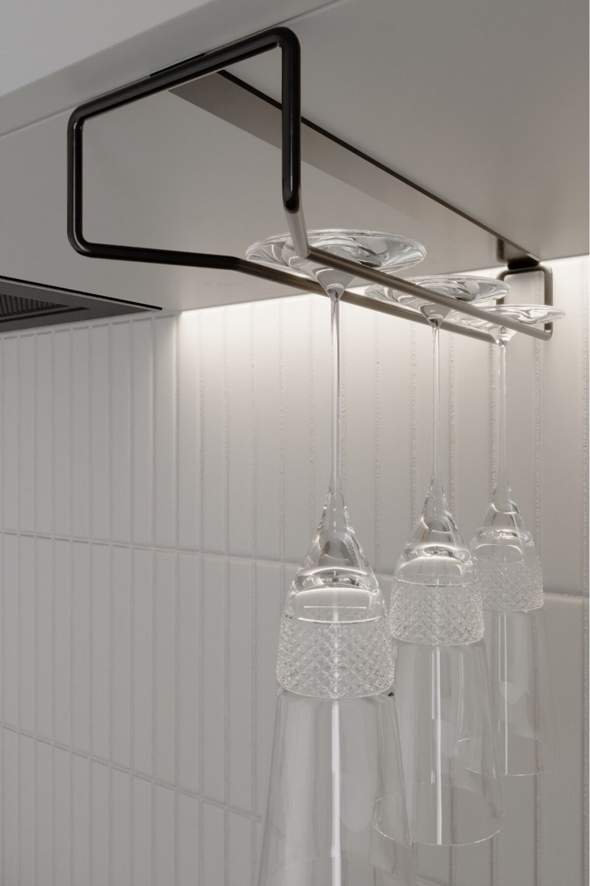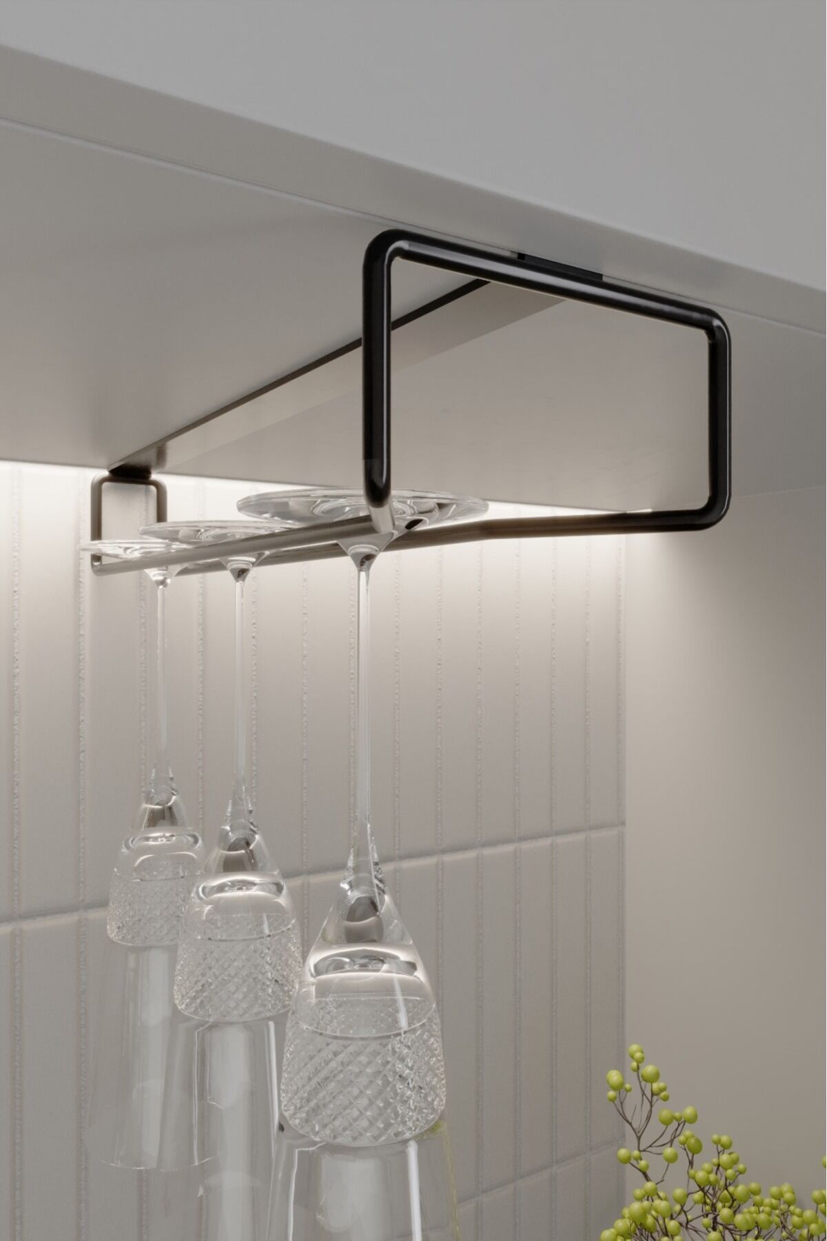 Paslanmaz Metal Bardak ve Kadeh Askılığı – Delmeden Montajlı, Mutfak ve Bar Düzenleyici