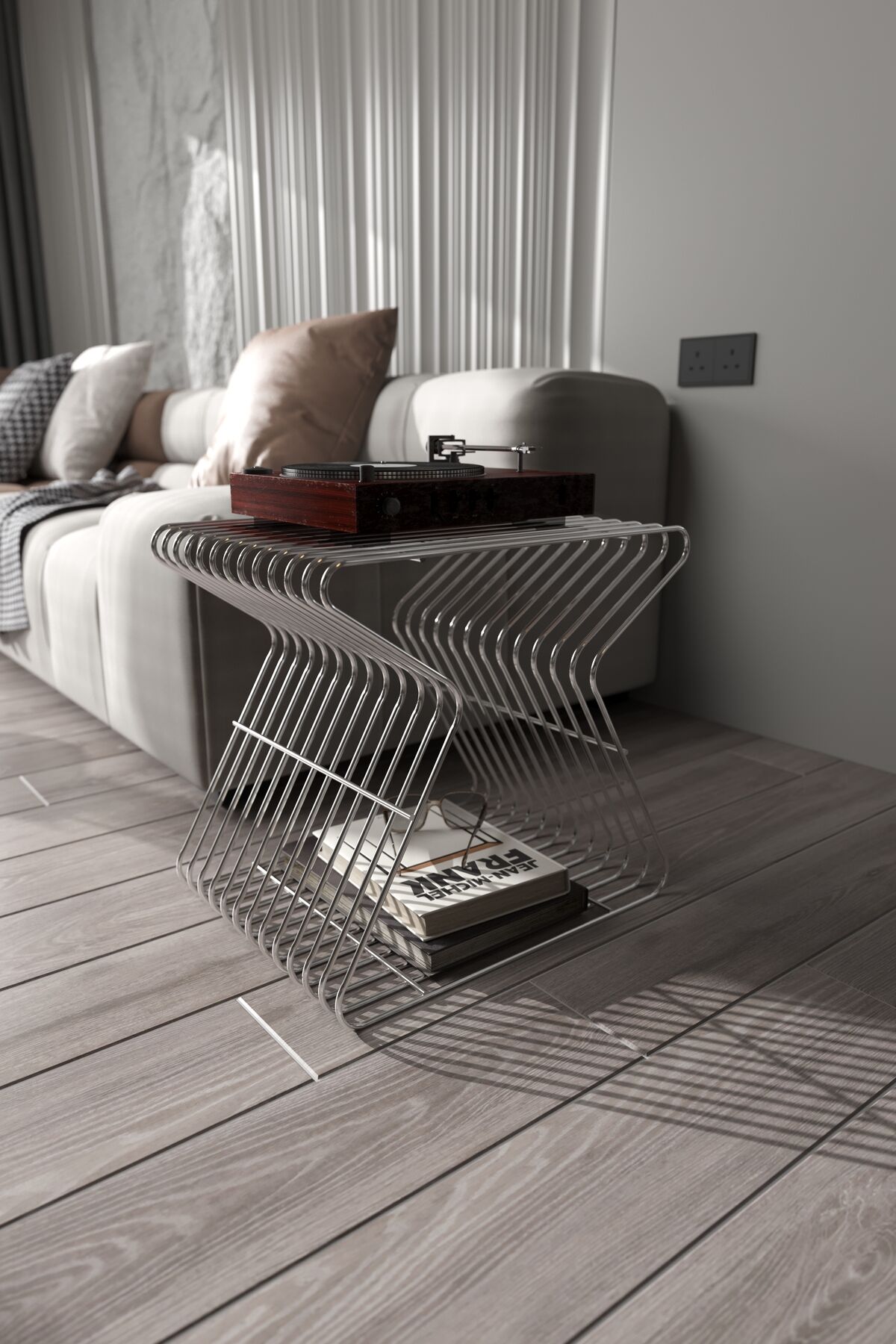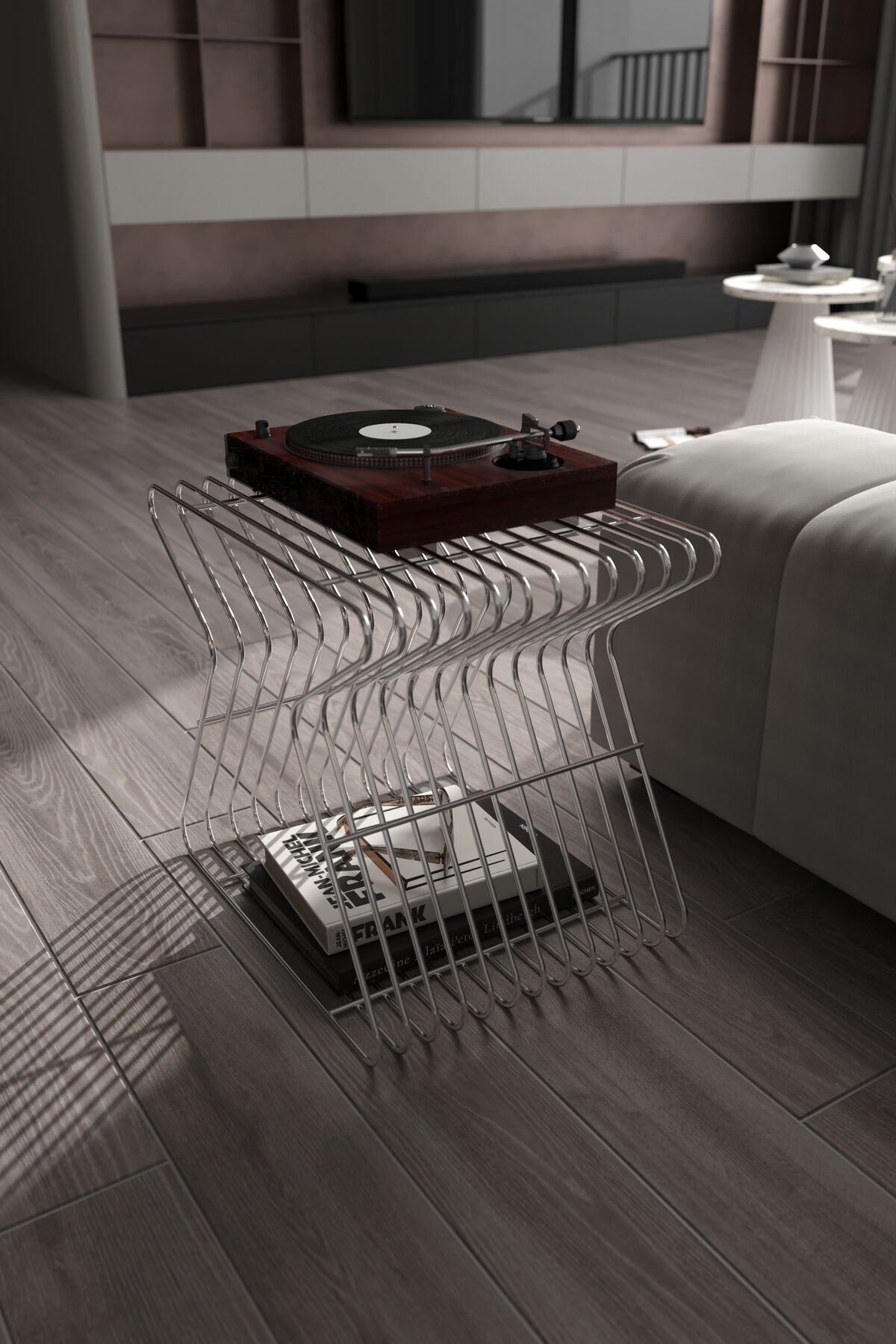 Roma Modern Metal Yan Sehpa Derilik Minimalist Tasarım Kitaplık Pikap Plak Çalar Düzenleyici