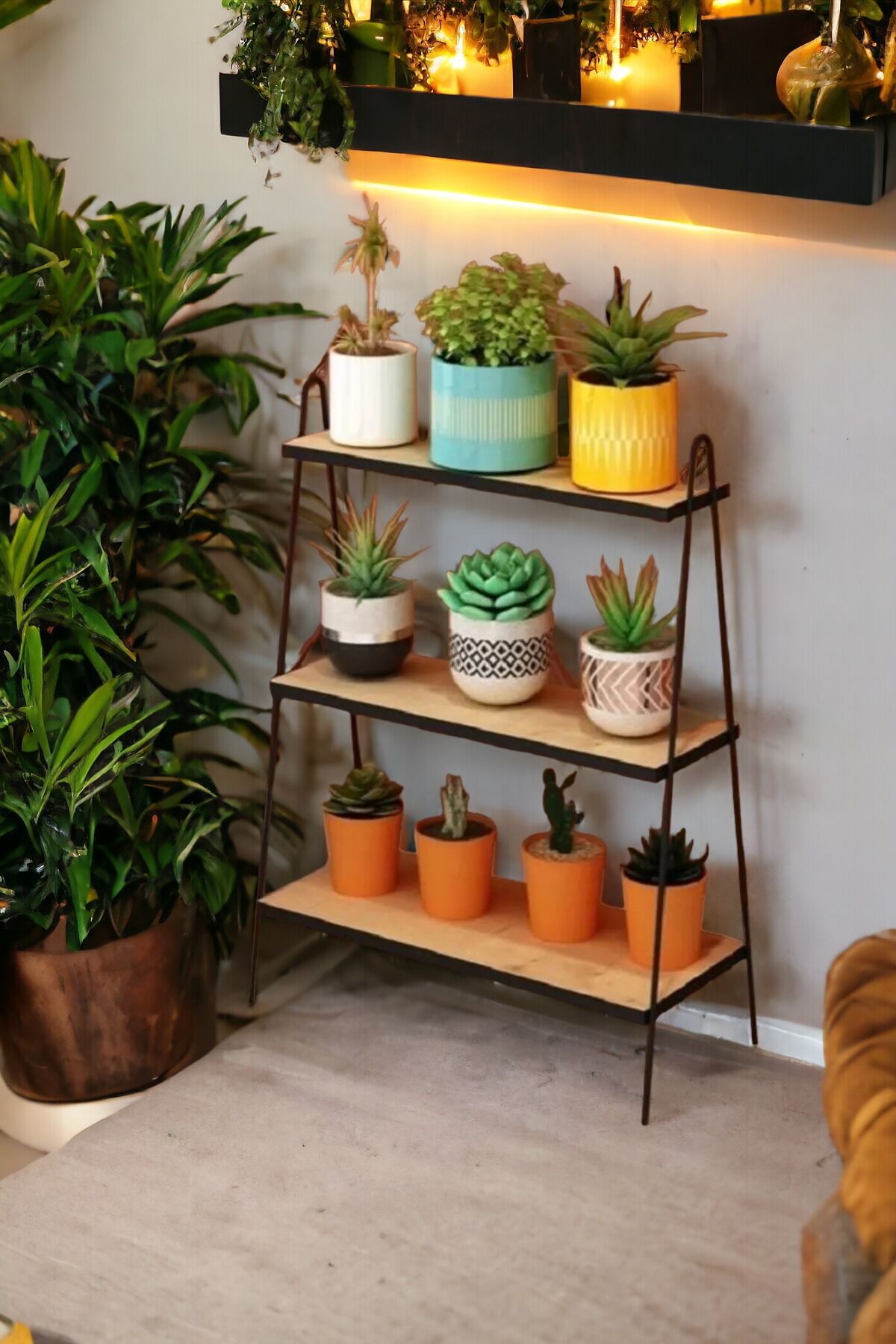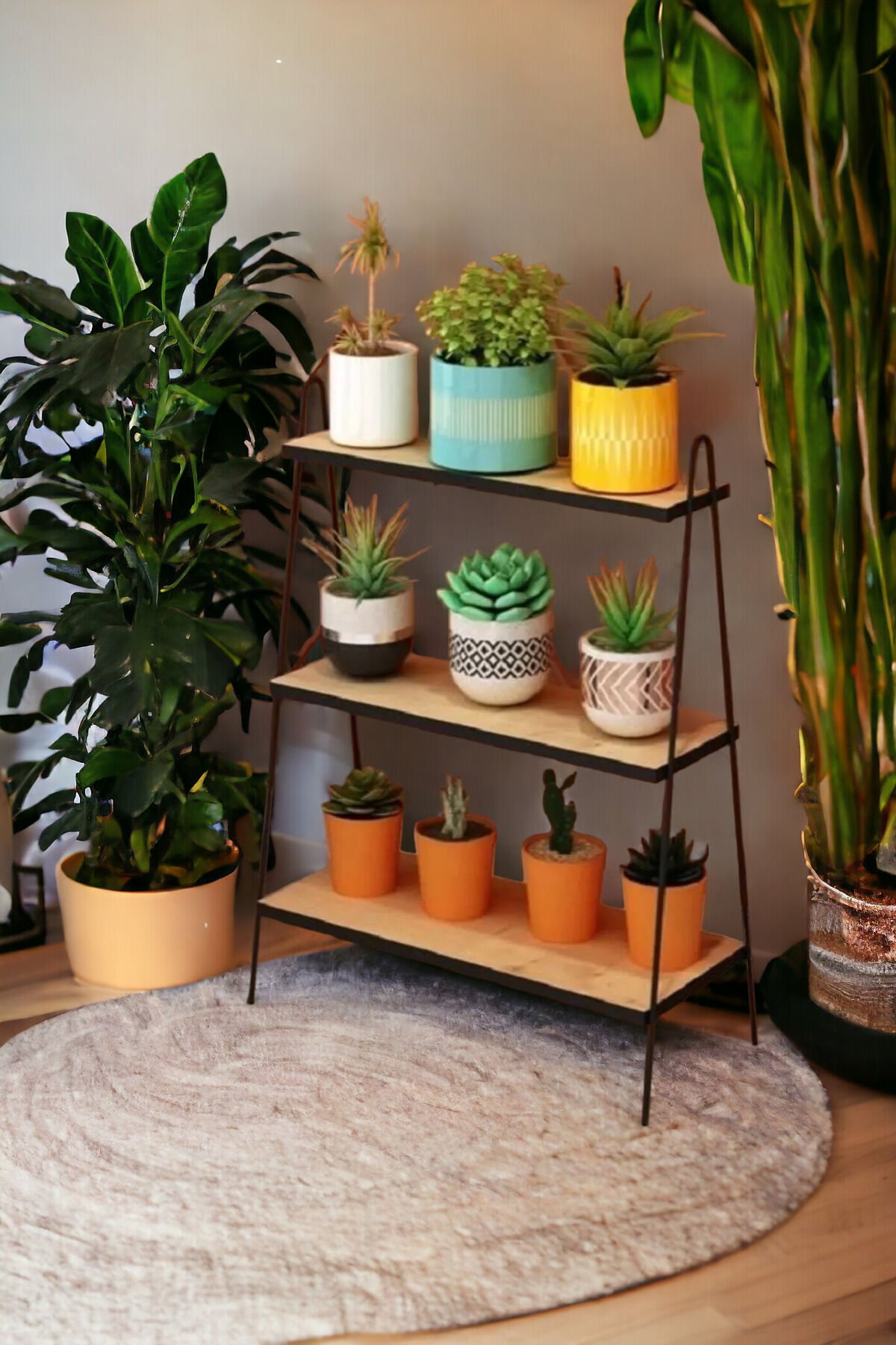 Üç Katlı Paslanmaz Ahşap Tabanlı Su Geçirmez Banyo Çiçeklik Salon Saksılık